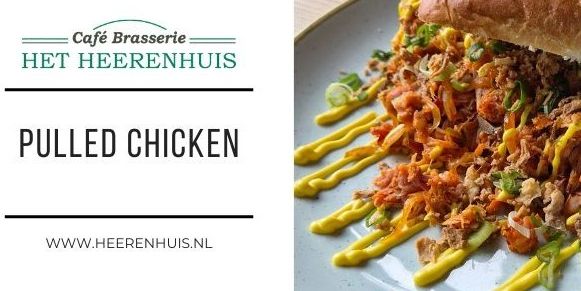 Brioche puntje met pulled chicken, kerriemayonaise en krokante uitjes!